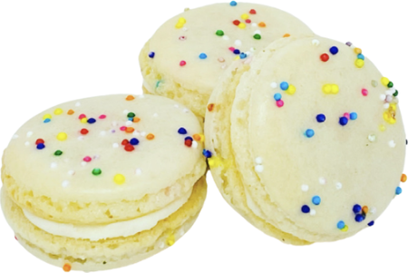 • Macarons made with vegan, gluten free almond flour and pure cane sugar
